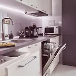 Eine komplette Küche mit einem Wasserkocher, einem Kühlschrank und Glasgeschirr sorgt für einen komfortablen Aufenthalt. Die Gäste dieses Apartments können den Komfort von Ausstattung zur Kaffee- & Teezubereitung genießen. Das Restaurant Nikos Greek Taverna mit gesunden Gerichten liegt circa 6 Minuten von hier entfernt. Darüber hinaus bietet dieses Apartment den Zugang zu einem Wellnesszentrum, die für eine zusätzliche Portion Entspannung sorgen. Für Fitnessbegeisterte werden Fitness-Stunden angeboten.